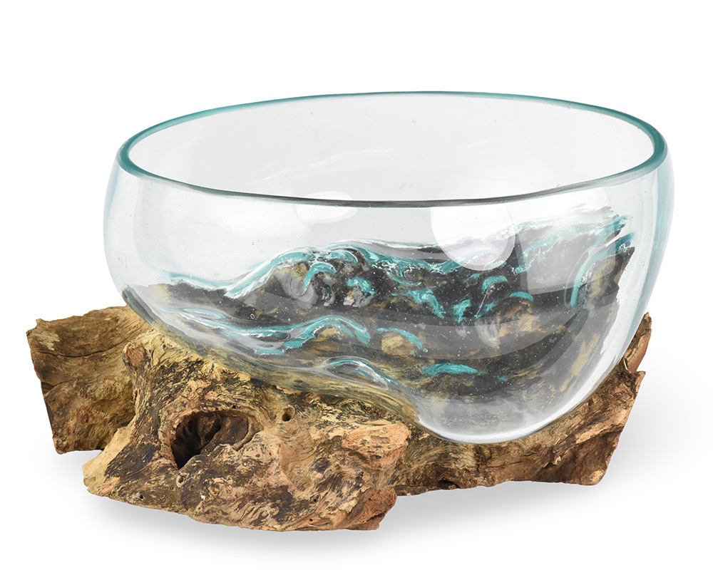 Skleněná mísa na dřevě 20 cm velká - var. R