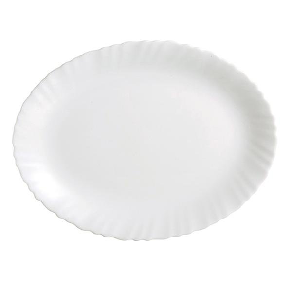 Jídelní oválný talíř "Titan" je krásný moderní talíř vyroben z opálového skla. Opálové sklo je tvrzené sklo, nahrazuje porcelán a je těžko rozbitné, velice oblíbené. Šířka talíře je 36 cm. Jemně vlnitý okraj. Barva bílá. prečítať celé
