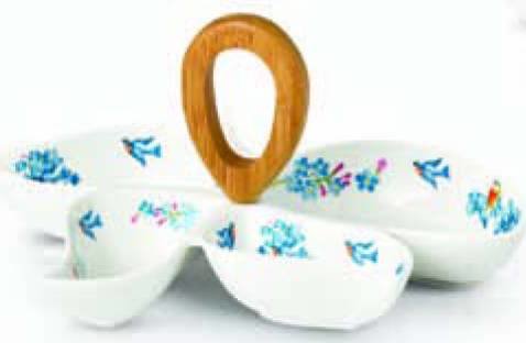 Keramický set se skládá ze čtyř misek, které jsou spojeny dřevěným madlem. Lze použít na oříšky, mandle, olivy, kousky sýra a další pochutiny, které si chcete dopřát sami či s přáteli. prečítať celé