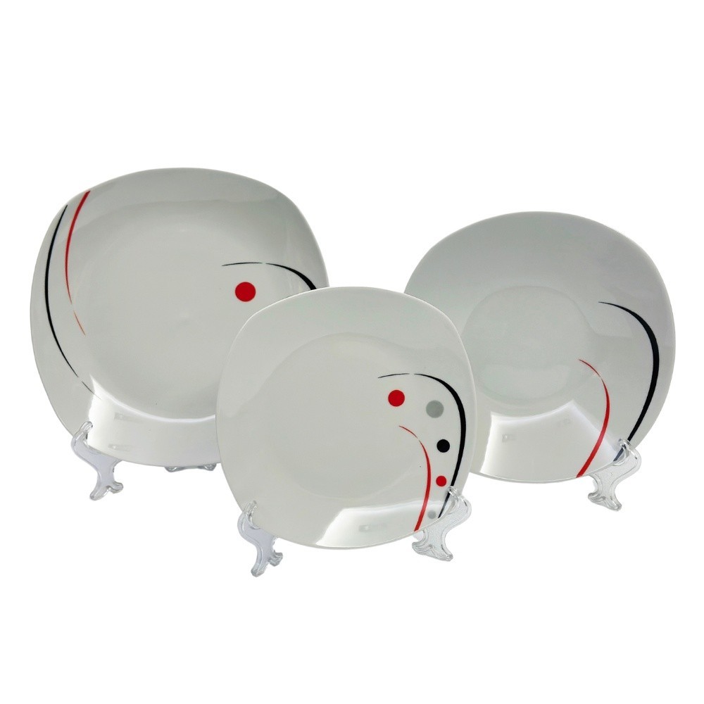 HOME ELEMENTS Jídelní set 6ks talíř,6ks polévkový talíř,6ks dezertní talíř,Pruhy a tečky
