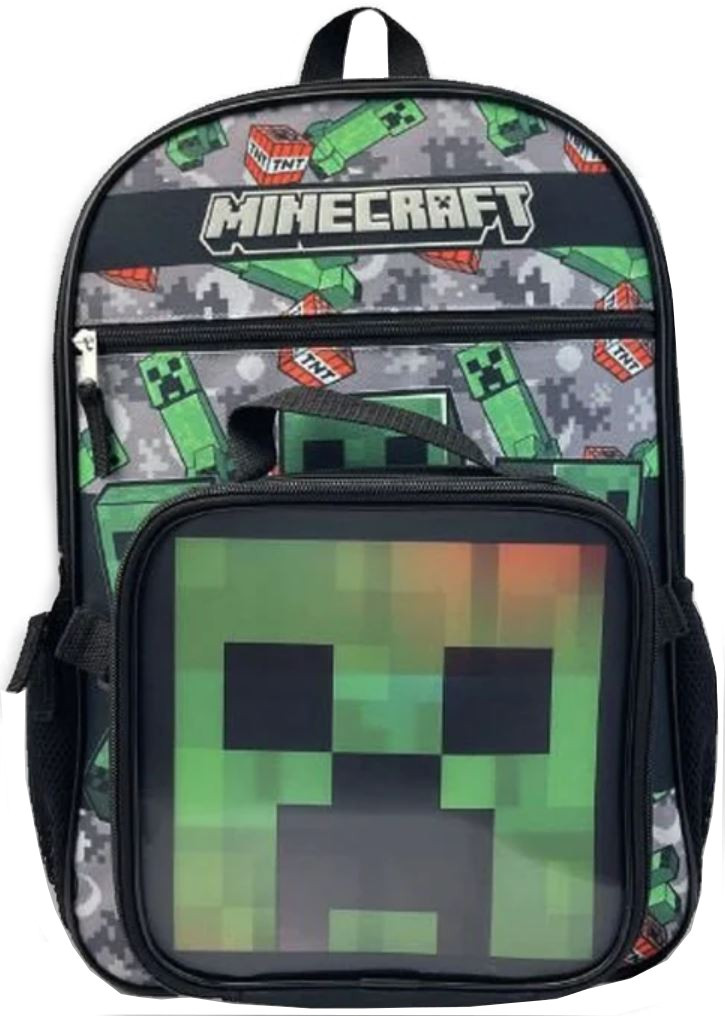 Školní batoh Minecraft|TNT Creeper: Set batoh - box na svačinu (objem 12 litrů|29 x 41 x 10 cm) šedý polyester