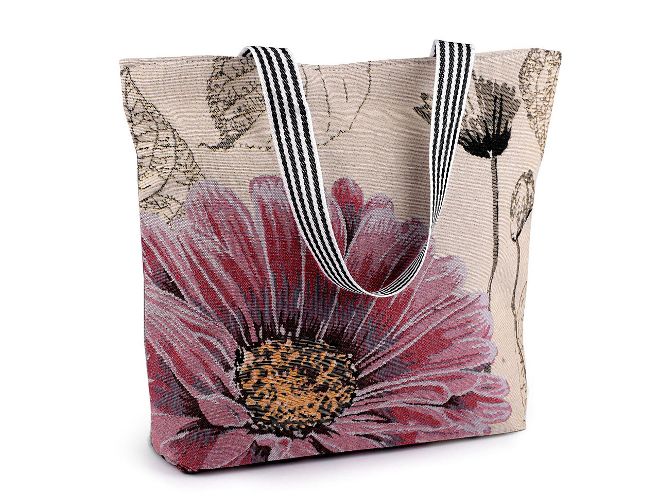 Táto textilná taška v režnej sivej farbe zaujme svojím dizajnom pripomínajúcim gobelínový kvetinový vzor. Ponúka dostatok priestoru vďaka rozšírenému dnu, takže si do nej pohodlne uložíte všetko potrebné - od nákupov až po plážové nezbytčnosti ako osuška alebo kozmetiku. Celá taška je bezpečne zatvárateľná na zips, čo zaručuje, že vaše veci zostanú chránené a poruke. Vnútorná podšívka s kapsičkou na zips poslúži na uloženie drobností, ktoré chcete mať rýchlo dostupné.