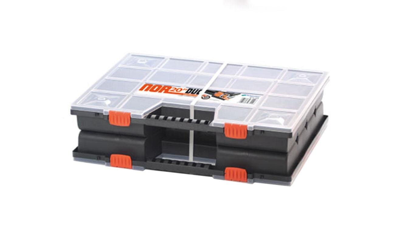 Udržiavajte poriadok a ľahký prístup ku všetkým drobnostiam vďaka praktickému box organizéru NOR20DUO. Je ideálnou voľbou na organizáciu pracovných stolov, domácej dielne alebo kancelárie, kde je potrebné mať všetko prehľadne usporiadané a po ruke.