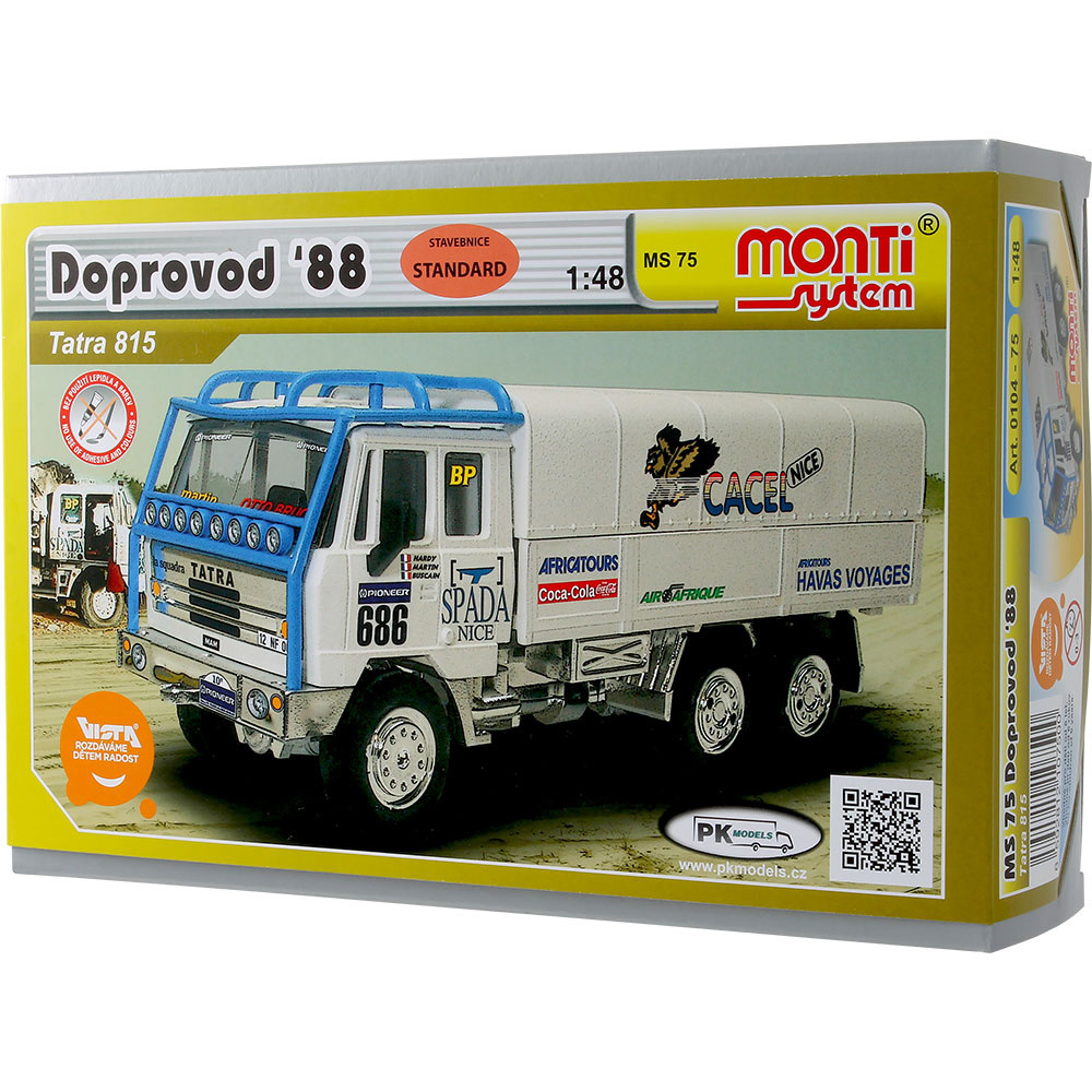 Stavebnice Monti 75 Tatra 815 doprovod Rallye 1988 1:48 v krabici 22x15x6cm