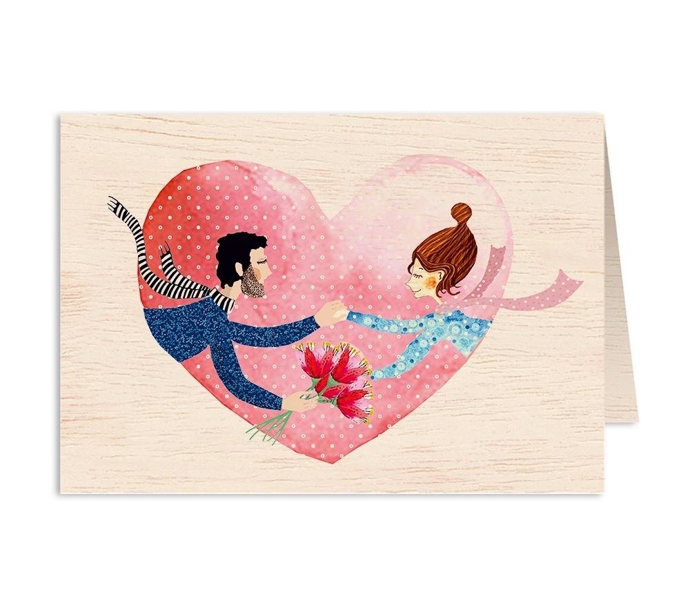 Karnet drewniany C6 + koperta Ślub bukiet i serce
