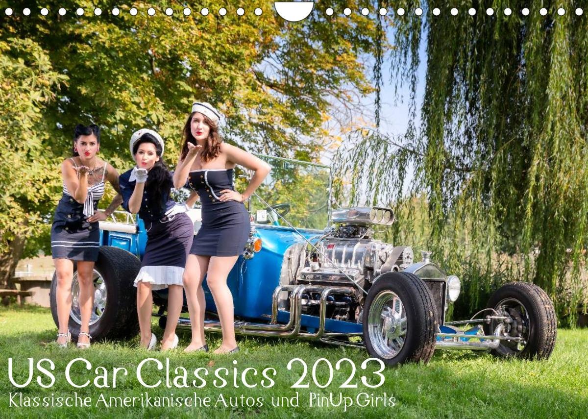 US Car Classics 2023 - Klassische amerikanische Autos und PinUp Girls (Wandkalender 2023 DIN A4 quer) (německy)