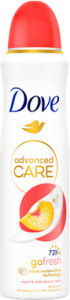 Dopřejte si 72hodinovou ochranu, svěžest a péči s Dove Advanced Care antiperspirantem s vůní broskve a květů bílé broskvoně. Díky inovativní Triple Moisturizing Technology poskytuje nejen účinnou ochranu proti pocení a zápachu, ale zároveň pečuje o pokožku podpaží. Navíc nezanechává bílé stopy na barevném oblečení – už žádné kompromisy mezi módou a pohodlím.