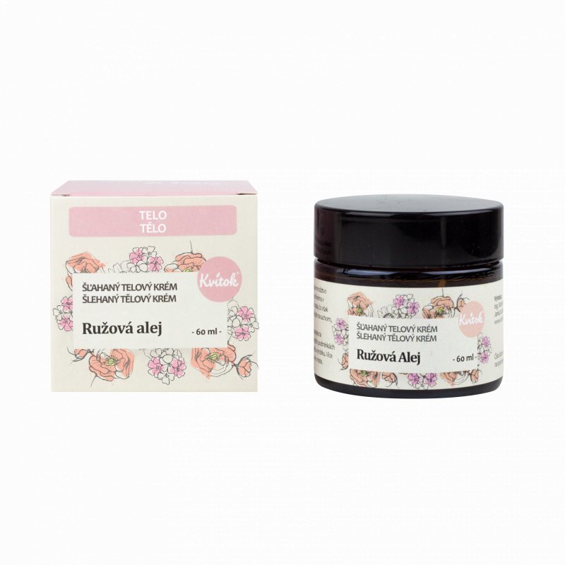 Jemně našlehaný krém prostoupí tělo vůní damašské růže, gerania a levandule. Směs bambuckého másla a mandlového oleje pomůže zacelit popraskanou pokožku a hydratovat suchou a namáhanou kůži na loktech či patách. Receptura krému je vyšperkovaná macerátem z růžových lístků, který má antioxidační účinky, regeneruje a pomůže odehnat předčasné vrásky. Výborně poslouží i během těhotenství, kdy pomáhá předcházet nezvaným striím a vhodný je i pro citlivou pokožku.