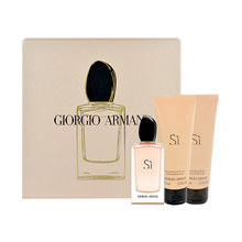Sí Dárková sada obsahuje- parfémovou vodu Sí EDP 100 ml- sprchový gel Sí 75 ml - tělový krém Sí 75 ml,vše v dárkovém balení Armani.Vanilková, aromatická, elegantní vůně pro ženy, které chtějí být samy sebou. Vůně byla uvedena na trh v roce 2013.SloženíHlava - černý rybízSrdce - frézie, růžeZáklad...