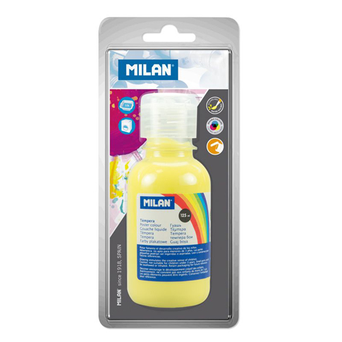 125 ml fľaša s odmerkou. Farba žltá. Plagátová farba je vyrobená z vysoko kvalitných svetlo odolných pigmentov. Farba je vďaka svojmu jedinečnému zloženiu sýta a žiarivá. Farba je hustá a poskytuje vynikajúce krytie. Farba sa môže riediť s vodou, aby sa vytvorili svetlejšie tóny a vodnejšia povrchová úprava. Rýchlo schne.