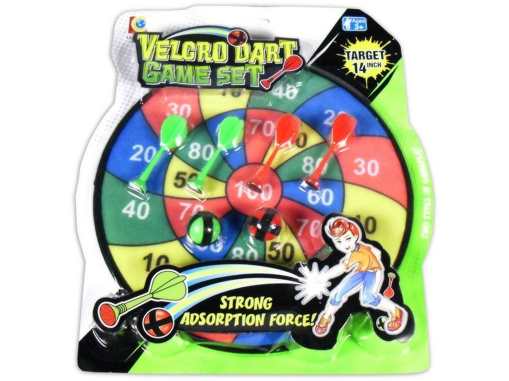 Terč na šipky na suchý zip.Hráči hází šipky, kuličky na terč.Cílem hry je trefit políčka, která obsahují nejvyšší čísla.Body se sčítají a po vyhodnocení vyhrává hráč s nejvyšším počtem bodů. prečítať celé