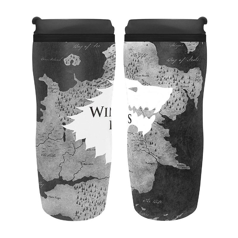 Vydejte se na cesty nejen Západozemím s tímto pěkným cestovním hrnkem, který zdobí mapa Westerosu a slogan Winter is here z oblíbeného fantasy seriálu Game of Thrones. prečítať celé