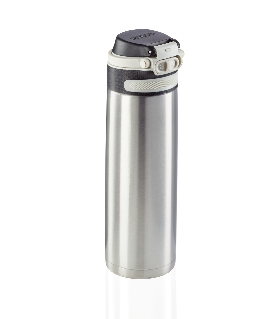 Termoska s šikovným uzávěrem o objemu 600 ml v barvě stříbrné značky Leifheit.