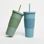 Pohár na pití s brčkem, 625ml, Neon Kactus, modrý