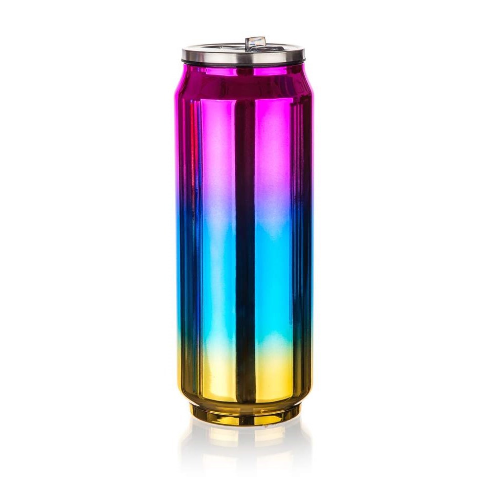 Termoska BE COOL 430 ml v duhové růžové barvě. Tělo dvoustěnné nerezové: uvnitř 18/8, vně 18/0, víčko: nerez 201 / PP / PS pítko / silikonové těsnění, brčko plast PE. Tělo termosky je vakuové, udrží nápoje déle horké či studené. Víčko není nepropustné, doporučujeme uchovávat ve svislé poloze.