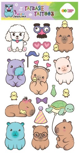 Tatuaże zmywalne Kapibara, KAPI FUN, rozm. 100x200 mm, Happy Color PBH