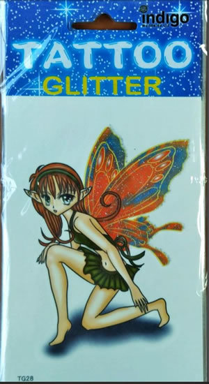 Tetování Víla se zelenými šaty, oranž. křídla