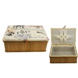 Štípaný bambus, víko-nábytková dekorační látka, kazeta je včetně plastové přihrádky.Rozměry : 29 x 20,5 cm, výška 11 cm. prečítať celé