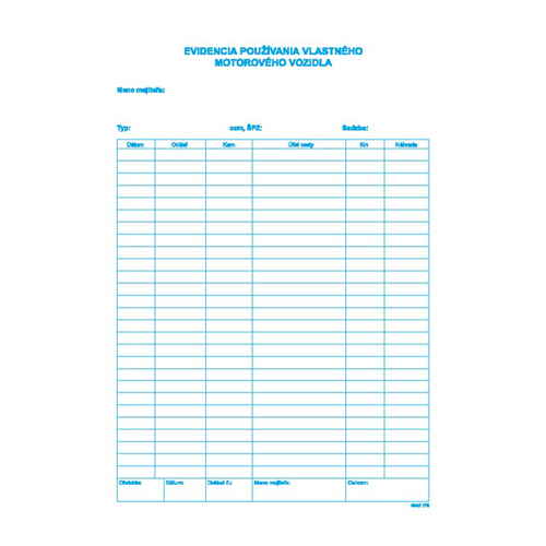 Tlačivo - evidencia používania vlastného motorového vozidla, formát A4 prečítať celé