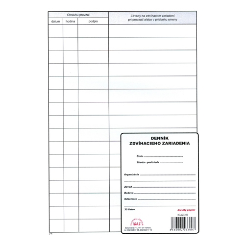 Deník zdvihacího zařízení A4 (300)