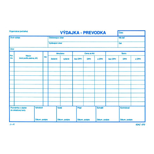 Výdajka - prevodka s DPH A5, samoprepis prečítať celé