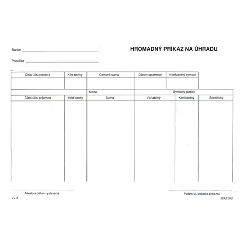 Hromadný příkaz k úhradě A5, samopr. (042)
