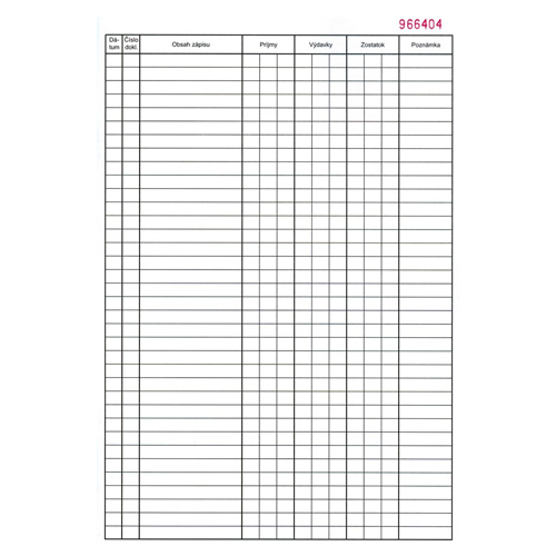 Pokladní kniha bez průpisem A4 - 50 listů - číslovaná