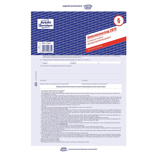 Nájemní smlouva pro pronájem bytů a domů 2873 značky Avery Zweckform ve formátu A4 vytváří jasné podmínky, bez ohledu na to, zda jste nájemcem nebo pronajímatelem. Smlouva zahrnuje také provozní náklady, jako je vytápění a teplá voda, které musí být přenášeny proporcionálně. Kromě toho obsahuje...