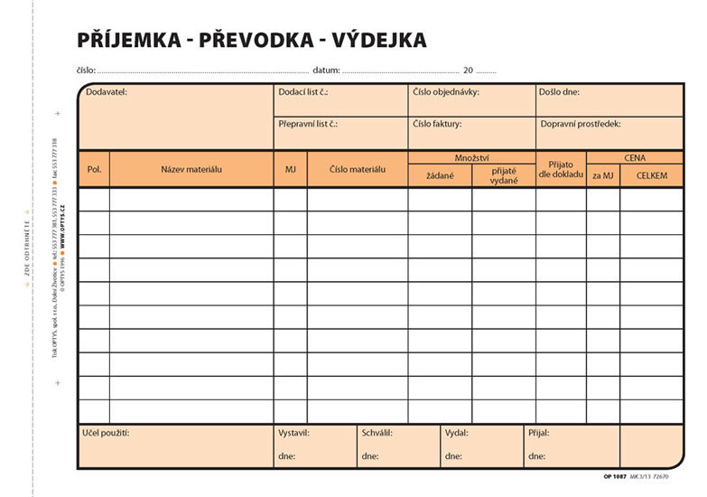 Příjemka-převodka-výdejka, A5, 100 listů, NCR