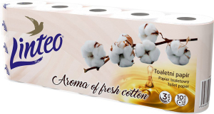 Linteo toaletní papír třivrstvý se svěží vůní bavlny role 130 útržků a 15 m, 10 rolí