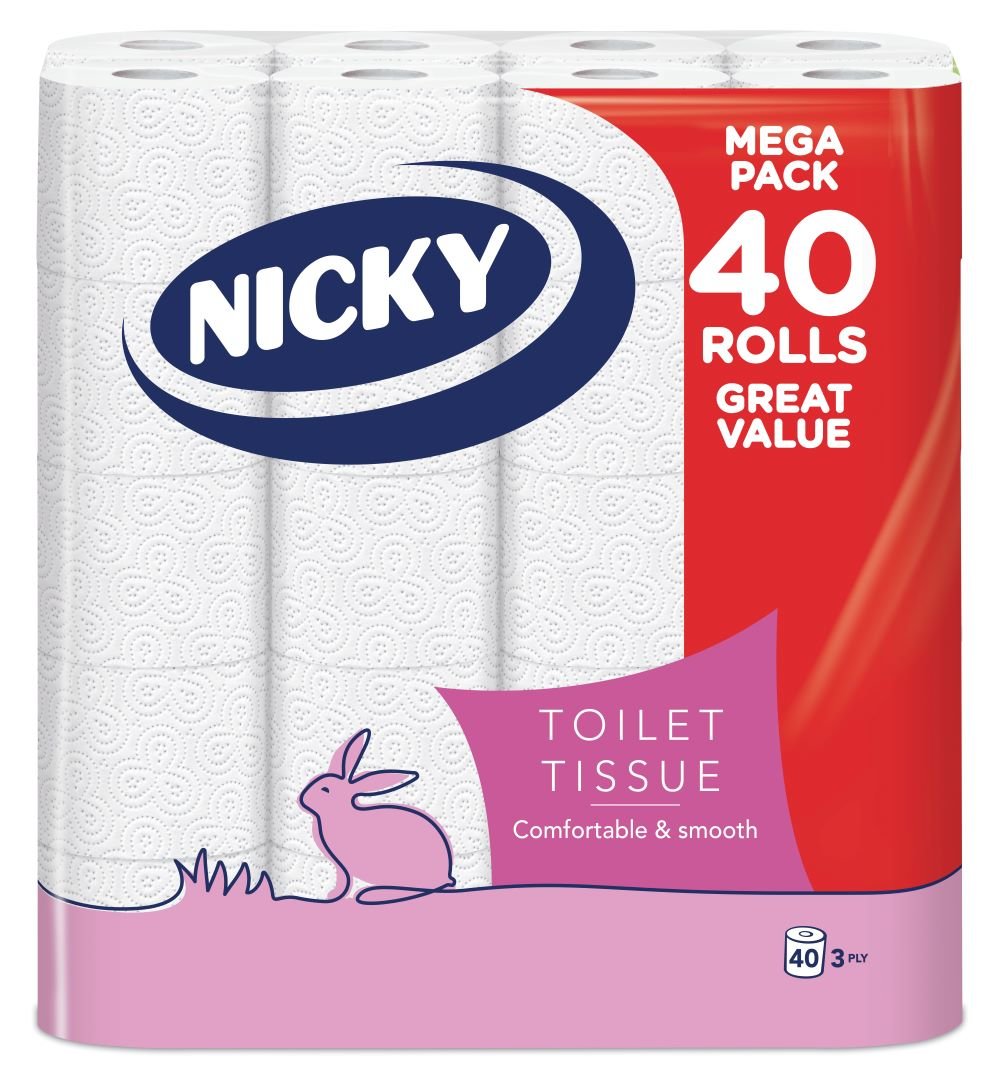 Papír toaletní 3 vrstvý Nicky Great Value 40 ks
