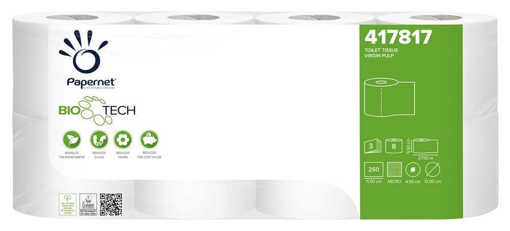 Toaletní papír v konvenční roli Superior BioTech, 3 vr., celulóza, 27,5 m, 8 ks