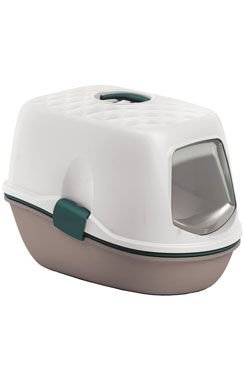 Inovativní a ekonomická krytá toaleta pro kočky. Toaleta se skládá z horního krytu s rukojetí a výklopnými dvířky a ze 2 podnosů a 1 vkládacího síta. Síto umožňuje oddělit nečistoty a opětovně použít čistou podestýlku (výměnou podnosů), čímž se zamezí jakémukoliv vysypávání steliva.odnímatelná...