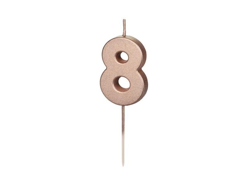 Świeczka urodzinowa 8 różowe złoto 4.5cm