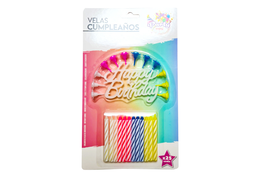 Klasické dortové svíčky (12ks) se zápichy (12ks) a zápichem s nápisem Happy Birthday. prečítať celé