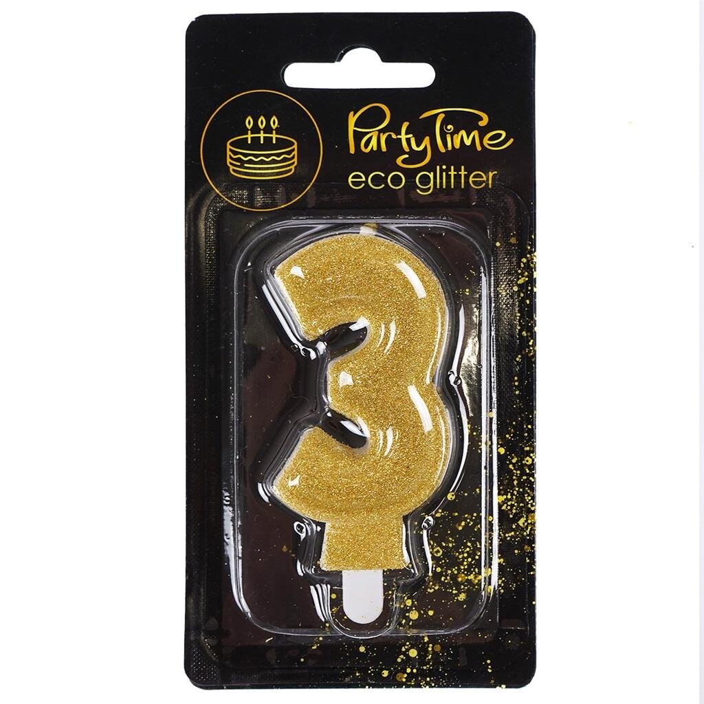 Świeczka cyferka z eko-brokatem nr 3 prečítať celé
