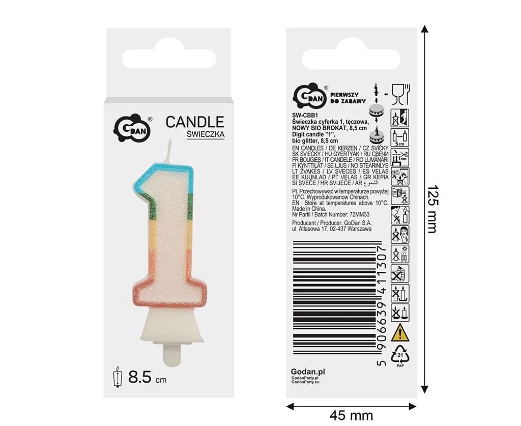 Świeczka cyfra 1 tęczowa 8,5cm