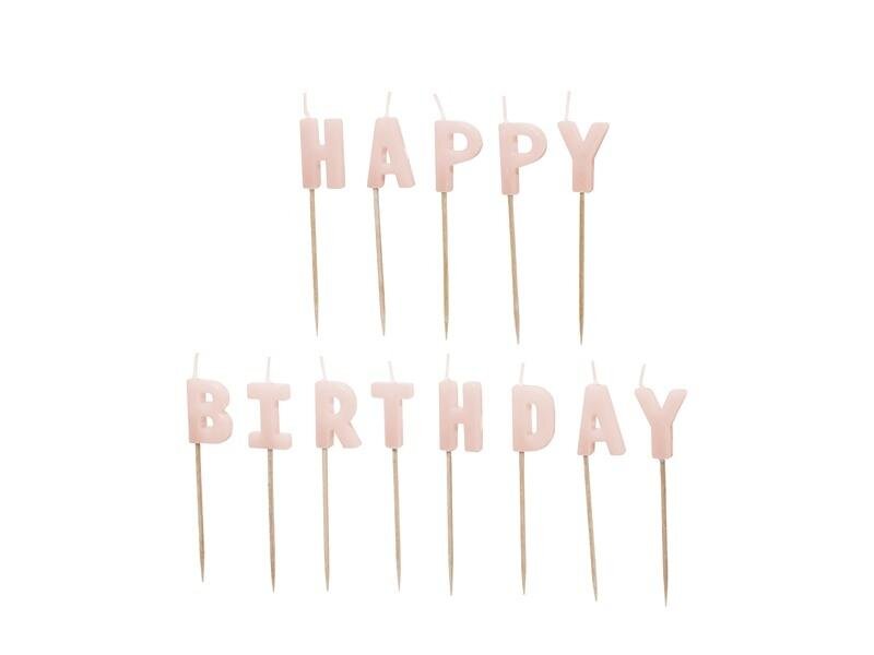 Świeczki Happy Birthday różowe 2,5cm 13szt