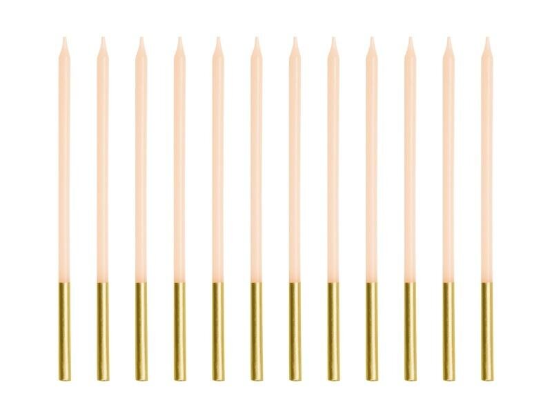 Świeczki urodzinowe gładkie w kolorze beżowym, wysokość ok. 14 cm. Zestaw zawiera 12 świeczek.(1 op. / 12 szt.) prečítať celé