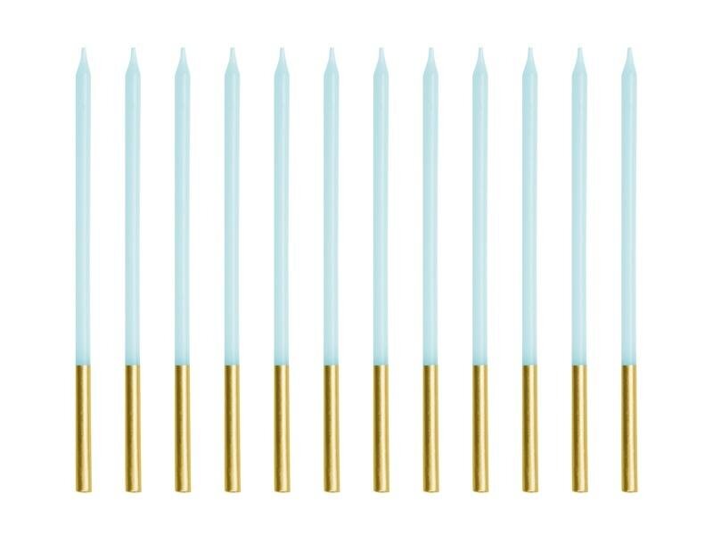 Świeczki urodzinowe gładkie błękitne 14cm 12szt