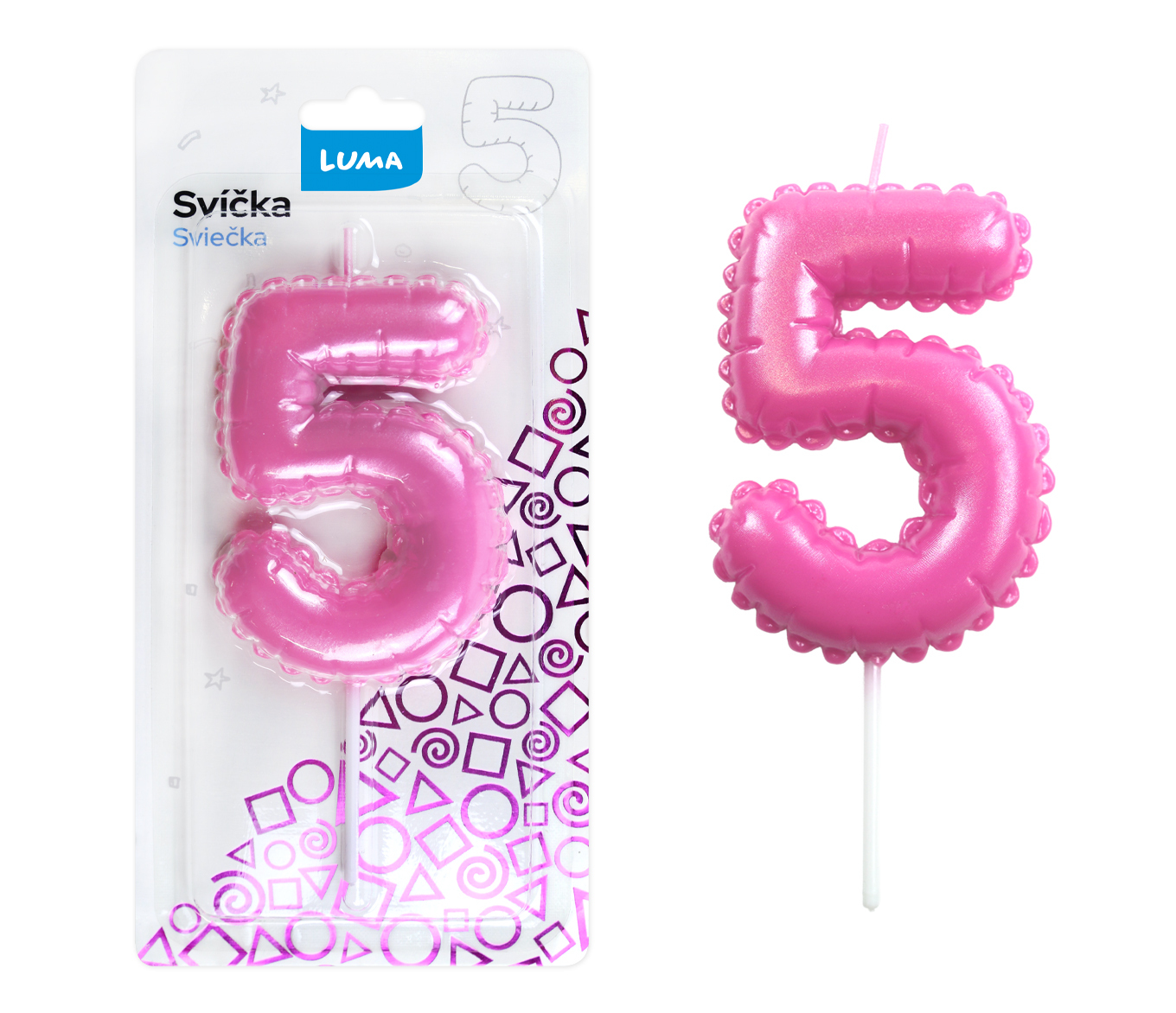 Svíčka č. 5 balónek RŮŽOVÁ LUMA