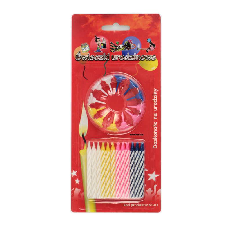 TAMIPOL Svíčky dortové, 24 ks+12ks držáků, mix barev