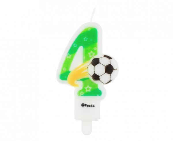 Svíčka na dort ve tvaru číslice 4, fotbalový motiv. Výška 7,8 cm. prečítať celé