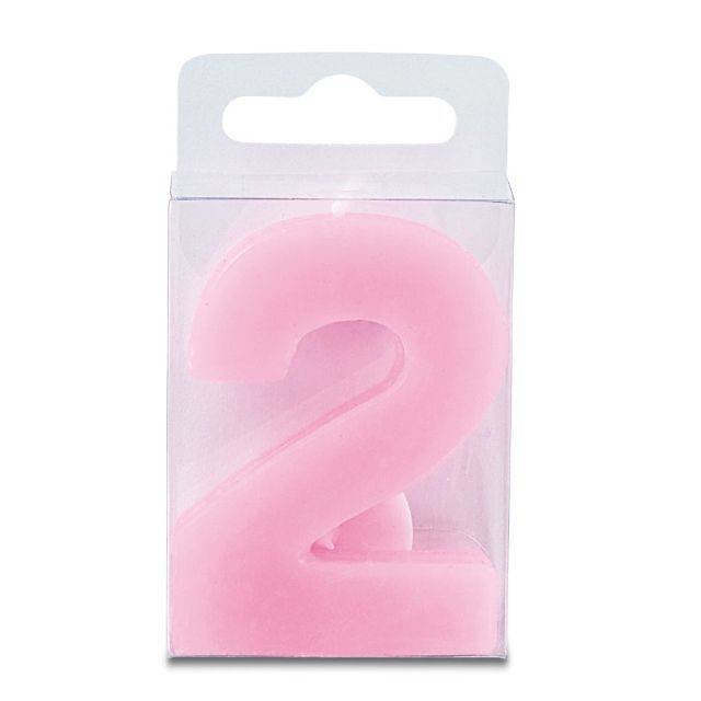 Svíčka růžové barvy ve tvaru číslice 2, vysoká 4 centimetry. prečítať celé