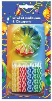 Svíčky na dort 24ks barevné včetně zápichů - Alvarak