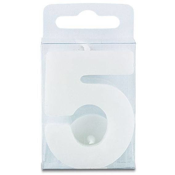 Svíčka ve tvaru číslice 5, výška 4 centimetry, bílá. prečítať celé