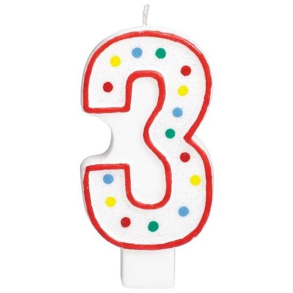 Świeczka urodzinowa cyferka 3 biała w kropki
