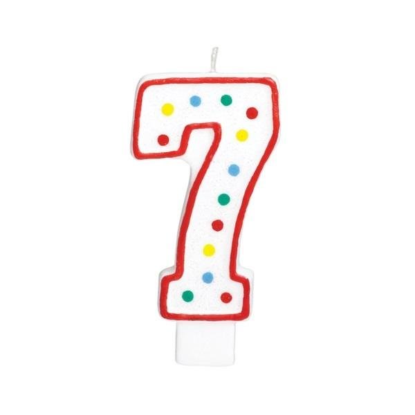 Świeczka urodzinowa cyferka 7 biała w kropki
