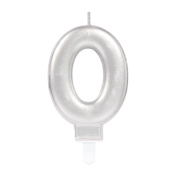 Świeczka cyferka 0 Sparkling Celebrations srebrna