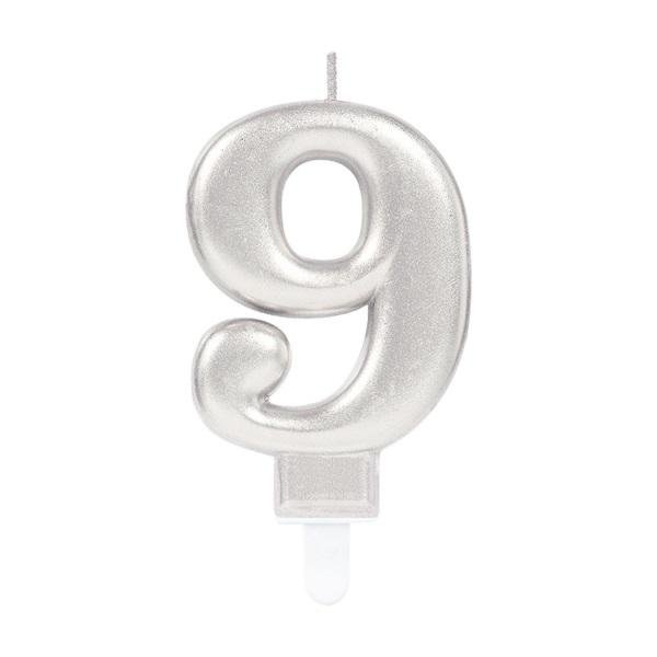 Świeczka cyferka 9 Sparkling Celebrations srebrna